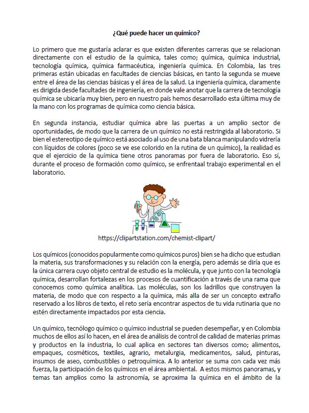 El químico es un profesional con pensamiento crítico y reflexivo, con capacidad de liderazgo y de trabajo en equipo, con responsabilidad ambiental y social, con capacidad de analizar, interpretar y desarrollar transformaciones químicas a nivel teórico y experimental, para desempeñarse en los diferentes campos disciplinares y afines a la profesión.